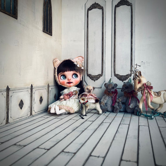 シャビーシックでアンティークな風合いのドールハウスを制作しました。